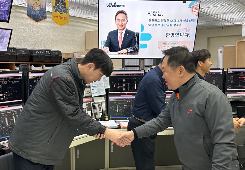 장용호 SK이노베이션 총괄사장이 2026년 새해 첫 날인 지난 1일 SK이노베이션 울산 콤플렉스를 찾아 안정조업과 운영개선(O/I)에 최선을 다해준 구성원들을 격려하고 있다.[사진=SK이노베이션 제공]