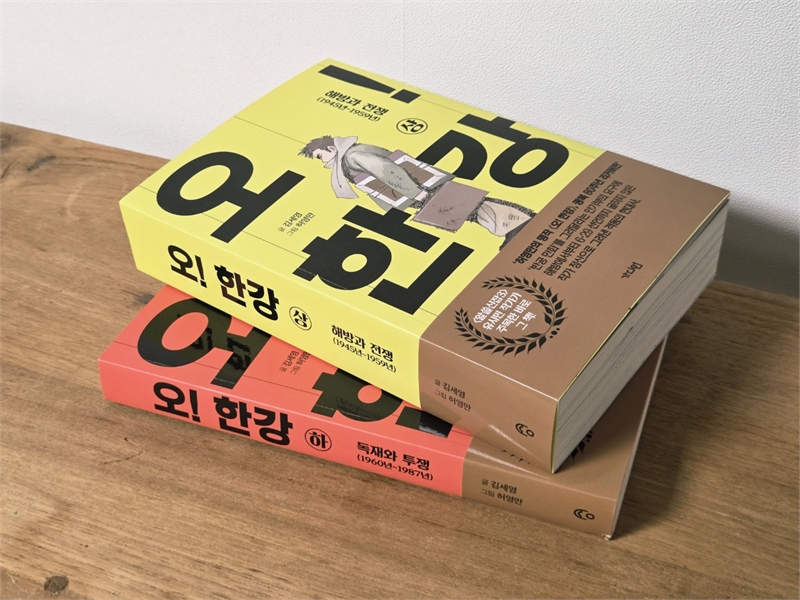 In celebration of Korea’s 80th Liberation Anniversary, master cartoonist Heo Youngman’s(허영만) 「Oh! Han River 오! 한강」 has been re released in a two volume special edition. This graphic novel forms the historical backdrop of Han Kang’s Human Acts.