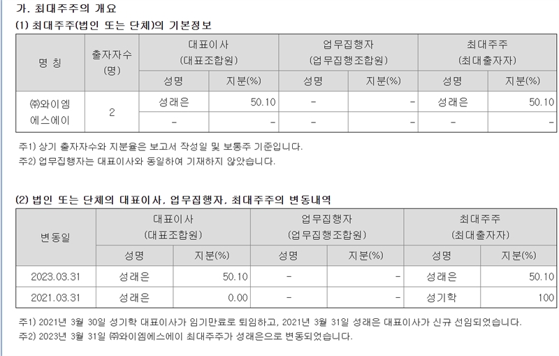 2023년 3월에는 아버지 성 회장이 지분 100%를 갖고 있던 YMSA의 최대주주(50.10%) 자리까지 거머 쥐었다. 성 회장은 자신의 지분 중 50.10%를 둘째 딸에게 증여했다.
