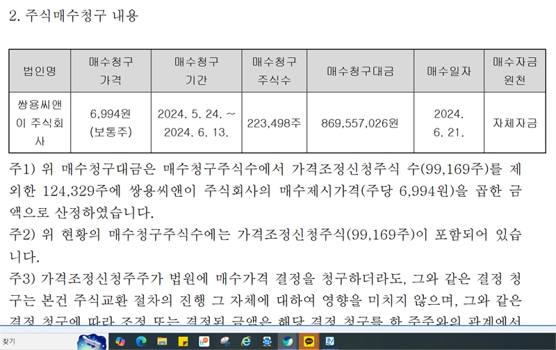 2024년 자진 상장폐지 당시 일부 주식매수청구 관련 공시