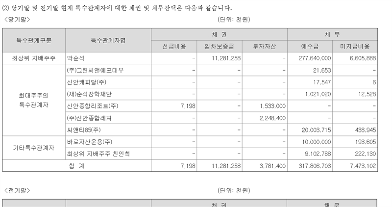 신안캐피탈은 매출 3074만원에 16억원의 영업손실(당기손익은 14억원 흑자)을 입었고, 신안관광(-50억원), 신안레저(-62억원) 등도 모두 적자였다. 특히 호텔리베라청담을 갖고있는 신안관광은 결손과 완전자본잠식 상태에까지 빠져있다.