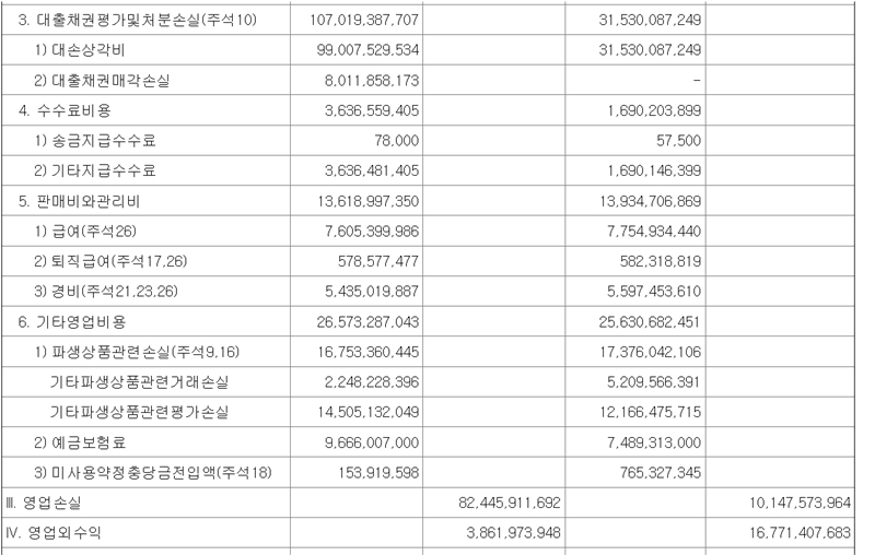 매각-상각 등으로 정리한 부실채권들에서도 손실이 많이 생겨 전체 영업손실 확대에 일조했다.