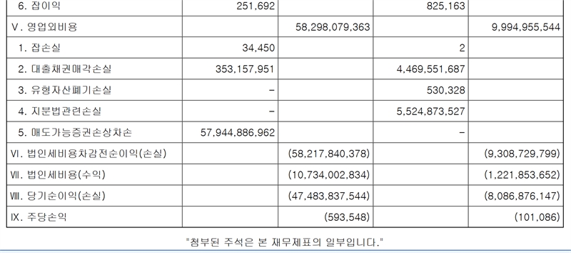 오케이캐피탈 주식 손상차손을 반영 안하더라도 종속기업 실적들을 뺀 자신의 별도 영업실적부터가 계속 적자에 누적결손도 상당하기 때문에 종속기업 손상차손까지 반영할 엄두도 못냈기 때문으로 추정된다.