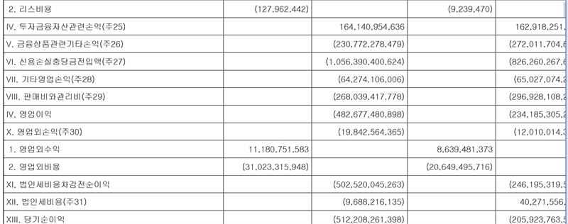 그러다보니 작년 이자수익(590억원)보다 이자비용(1041억원)이 훨씬 많아 순이자손익은 450억원 적자였다. 2023년에도 285억원 적자였다. 이 적자가 회사 전체 별도기준 적자의 대부분을 차지했다.