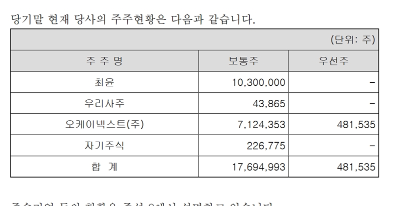 작년 3자배정 유상증자후 확 줄어든 오케이홀딩스대부의 최 윤 회장 지분