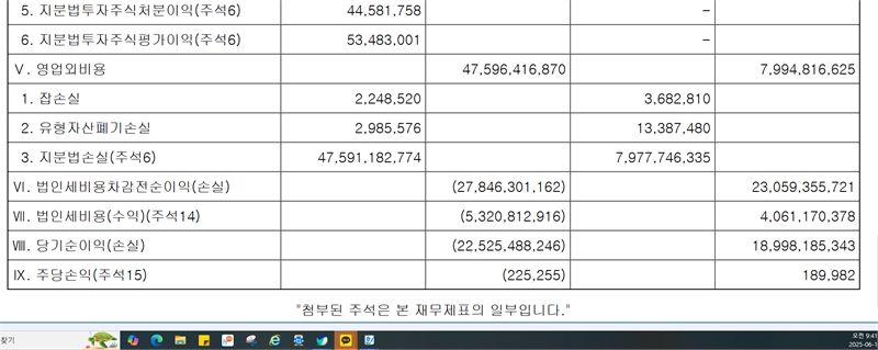 하지만 당기손익(별도)은 2023년 190억원 흑자에서 작년에는 225억원 적자로, 적자 전환했다. 100% 종속 자회사 엑스인하우징에서 생긴 476억원의 지분법손실 때문이다.