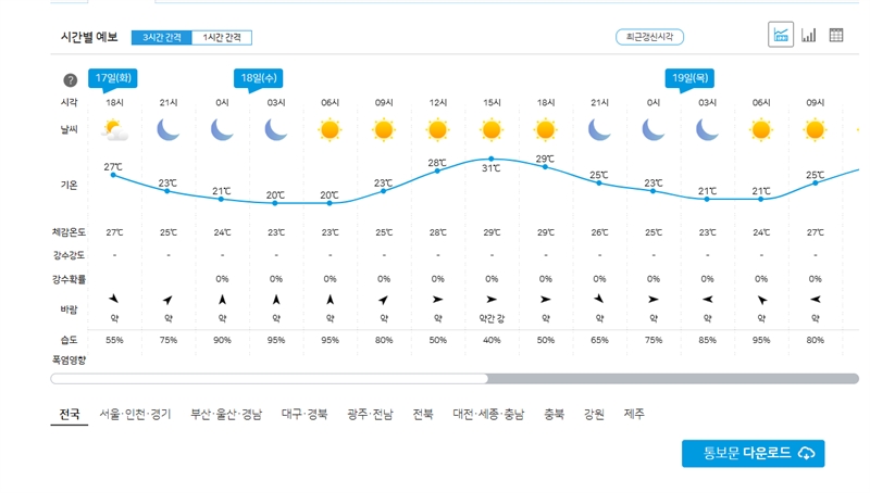 이어 “중부지방과 전북은 정체전선을 동반한 채 서쪽에서 다가오는 저기압 앞쪽에 형성된 온난전선의 영향으로 19일 늦은 오후에서 밤 사이에 비가 내리기 시작하겠다”고 설명했다. 이후 20일부터 21일까지 정체전선 영향으로 전국에 비가 쏟아지겠다.
