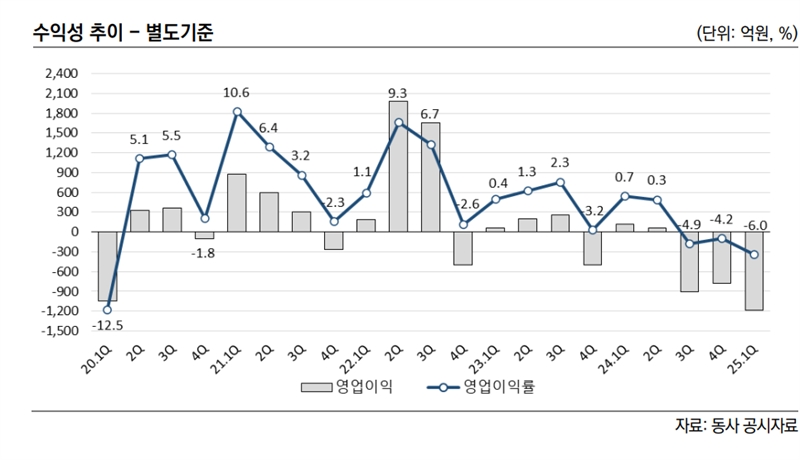 이 회사는 작년 3분기부터 영업적자가 계속되고 있다. 2027년 경까지 증설부담이 지속되면서 올레핀 계열의 공급과잉 기조도 당분간 이어질 것으로 한신평은 전망했다.