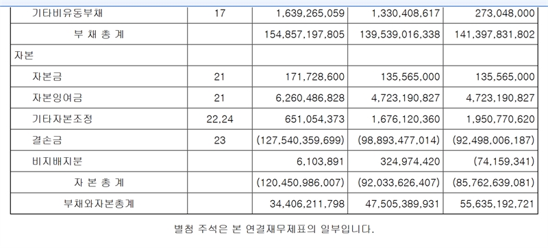 K-IFRS로 바꾸면 RCPS(상환전환우선주)나 리스 등이 대부분 부채로 바뀌기 때문에 부채가 확 늘어나고 결손도 더 심해질 수 있다. 하지만 이 회사는 회계방식을 바꾸기 전에도 이미 만성 적자에 결손이 심한 기업이었다.