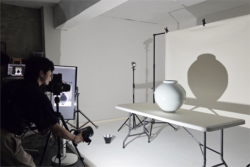 양 포토그래퍼는 이번 작업을 위해 전국 곳곳에 흩어진 유명 달항아리를 직접 찾아다녔다. 스튜디오 안에 놓인 도자들은 각기 다른 시대와 장인의 손길이 묻어 있다. 그는 달항아리가 품은 풍요와 심미를 한지와 캔버스에 재현해 낼 예정이다.