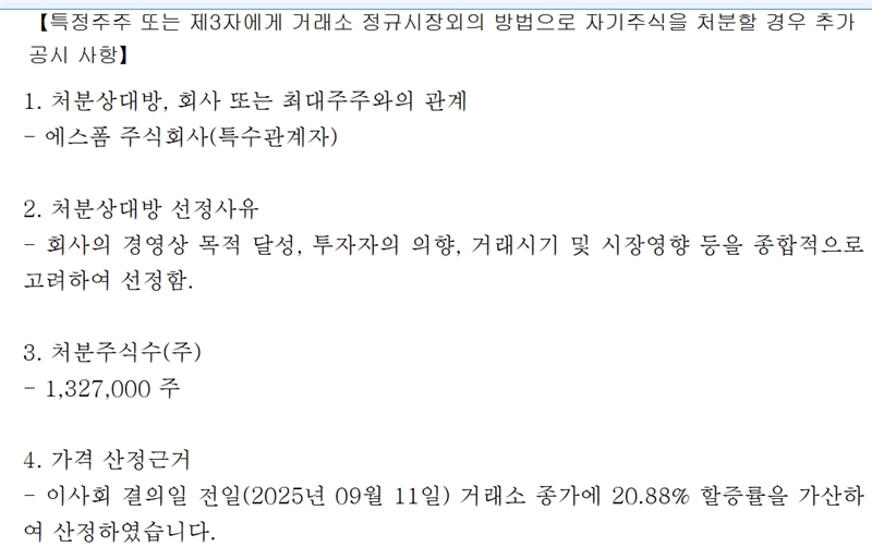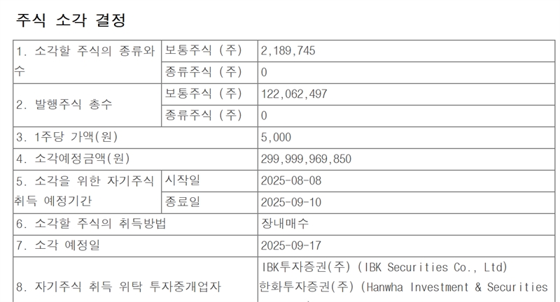 이런 경우들을 가급적 막고 주주가치 제고용으로 가급적 자사주를 사용하도록 새 정부와 여당이 자사주 소각 의무화를 이번 정기국회에 본격 추진하는 움직임을 보이자 강제 소각 당하느니 법 개정 전에 서둘러 자사주를 처분해버리자는 움직임들도 노골적으로 벌어지고 있는 것이다.