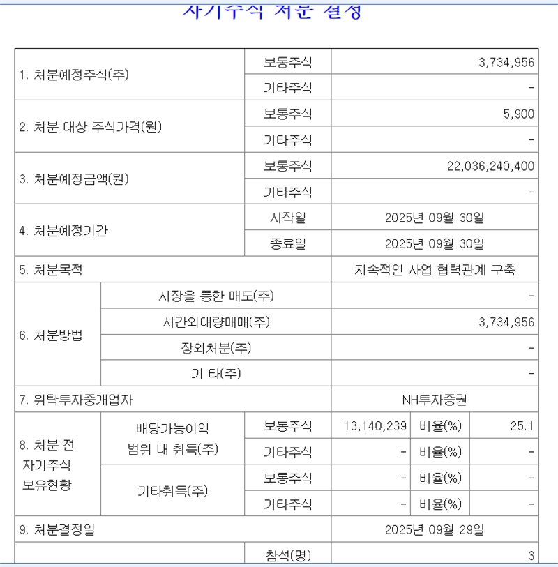 3사는 이번 거래의 목적을 ‘지속적 사업협력관계 구축’이라고 밝혔지만 경영권 분쟁 등 유사시 서로 우호지분으로 상대방 자사주를 활용할 수 있는 기반도 구축하게 되었다.