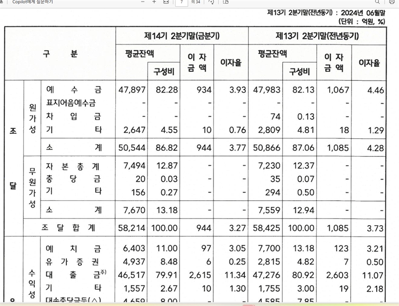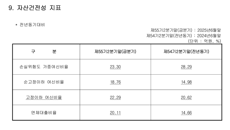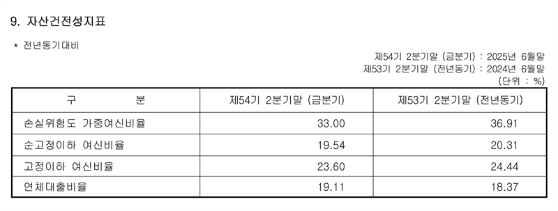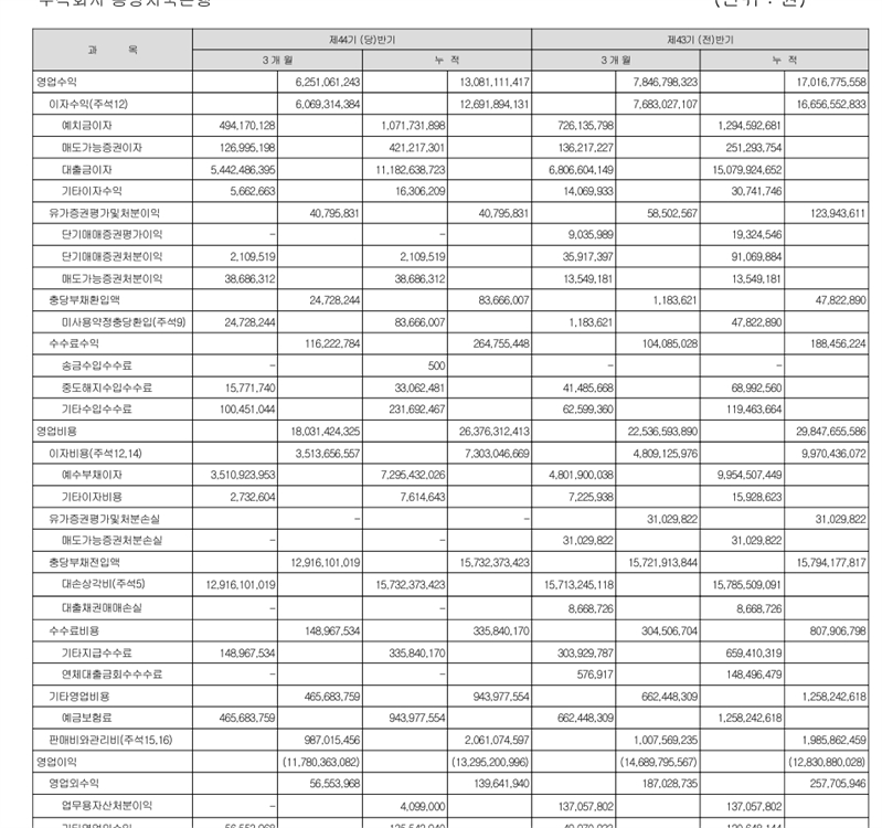 부동산PF 쪽만 당국 눈치 때문에 부실을 어느 정도 정리했을뿐 나머지 분야는 여전히 부실 요인들이 많다. 대손상각비는 작년 상반기 491억원에서 올 상반기 157억원으로 급감했지만 상상인저축은행처럼 파생상품평가이익이 크게 늘지 못해 올 상반기 영업적자는 107억원으로, 여전히 영업적자 상태에 머물러있다. 작년 상반기 영업적자는 410억원이었다.
