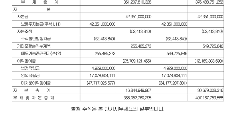 그동안 부실을 많이 줄여 대손상각비가 작년 상반기 61억원에서 올 상반기 0로 크게 감소했는데도 불구하고 올 상반기 9900만원 영업적자를 기록했다. 다만 작년 상반기 64억원 적자에 비해 적자 규모는 크게 줄었다.