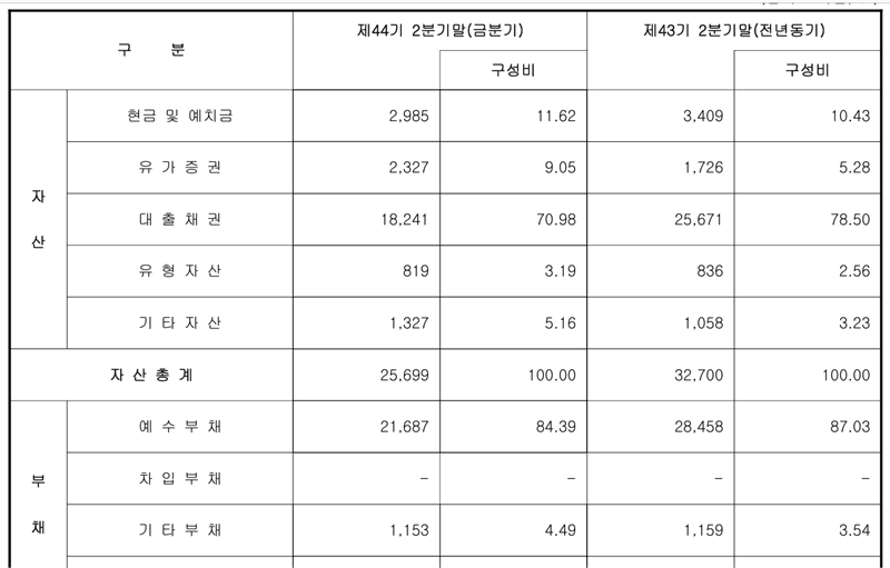 작년 상반기 172억원에 달했던 대손상각비도 올 상반기 0로 급감하면서 같은 기간 영업손익은 169억원 적자에서 16억원 흑자로, 흑자전환에도 성공했다. 크게 줄어든 대출과 예금, 자산을 다시 늘려 얼마나 영업력을 회복할 수 있을지만이 향후 관건이다.