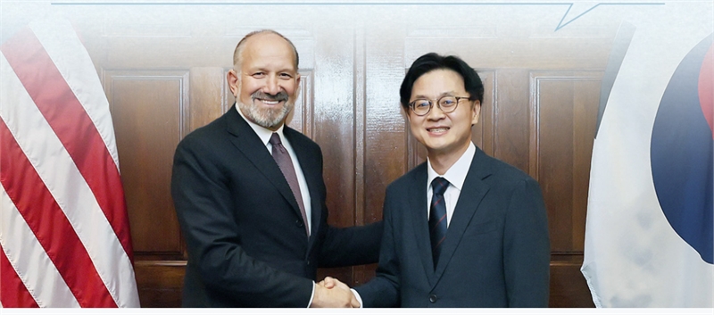 러트닉 미 상무부장관(왼쪽)과 김정관 산업통상자원부 장관