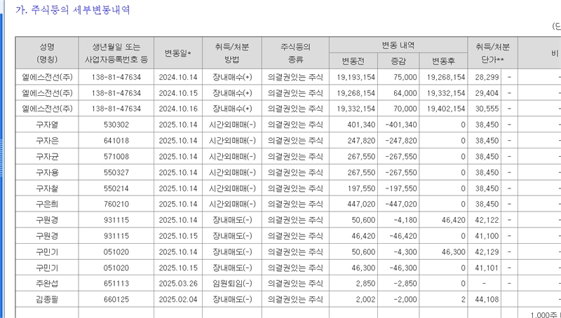 구씨 8인의 최근 LS에코에너지 지분 전량 매각 관련 공시
