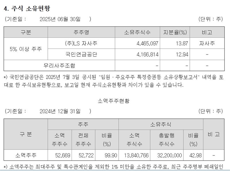 특히 전체주주의 43%에 달하는 소액주주는 앞으로도 중요하다. 소액주주들이 LS에 반기를 들고 호반 쪽에 호응할 경우 문제가 걷잡을 수 없이 커질 수 있다. 그래서 LS 측은 자사주 처리 문제에는 더 조심하고 있는 분위기다.