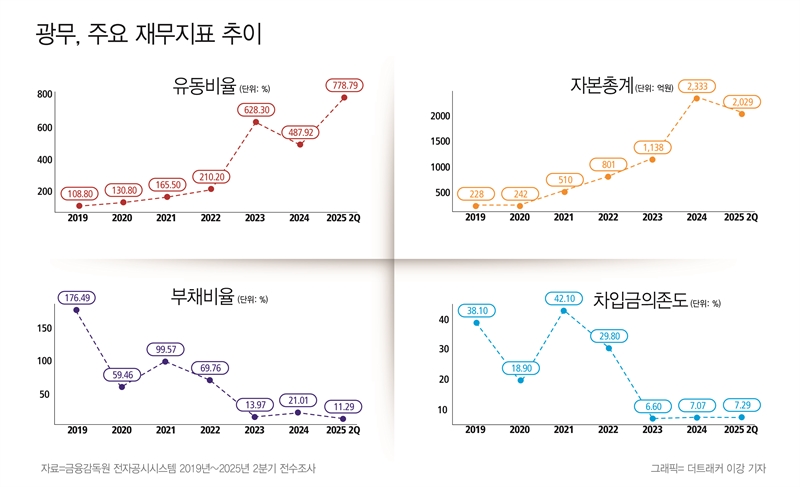 A1. 광무 현 경영진의 경영개선 노력으로 최근 7년(2019년 말~2025년 2분기 말)간 재무 안정성은 드라마틱하게 개선되었습니다. 현 주요 경영진은 2019년 하반기부터 경영을 맡아오고 있습니다.
