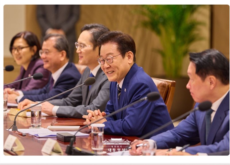 이재명 대통령은 지난 16일 한·미 관세협상 후속 대책 논의차 주요 기업 총수들을 만난 자리에서 나 “한미 통상 안보 협상 과정에서 가장 많이 애를 쓴 건 기업인들”이라며 “대미 투자가 너무 강화돼 국내 투자가 줄어들 거란 걱정들을 하는데, 그런 걱정이 없도록 여러분이 잘 조치해주실 것을 믿는다”라고 말했다.