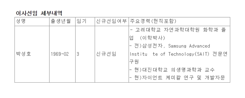 △박성호 교수, 사내이사로 선임…자이언트케미칼과 협업