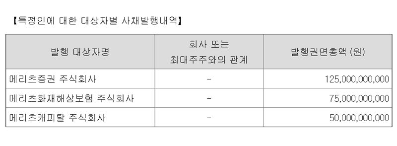 아니나 다를까 자금사정이 취약한 기업들을 대상으로 한 ‘하이 리스크, 하이 리턴’ 영업전문으로 소문난 메리츠금융그룹이 이 딜을 맡았다. 대표 주관사는 메리츠증권이고, CB도 전액을 메리츠 계열사들이 인수해 주었다. 메리츠증권이 1250억원, 메리츠화재 750억원, 메리츠캐피탈 500억원 등이다.
